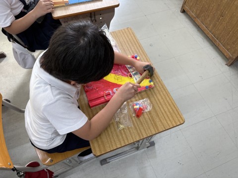 真っ直ぐに打ち込むのが少し難しそうですが、補助の手を添えてしっかりと打ち込んでいます。