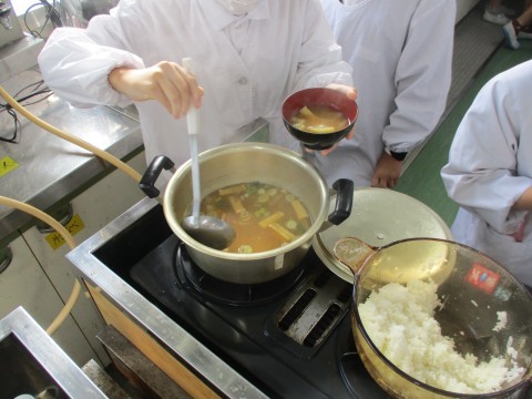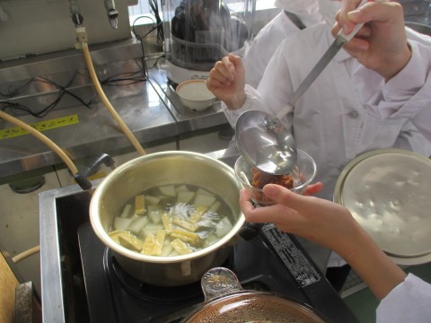自分たちで仕込んだみそは,香りも良く,丁寧にといて仕上げていました。