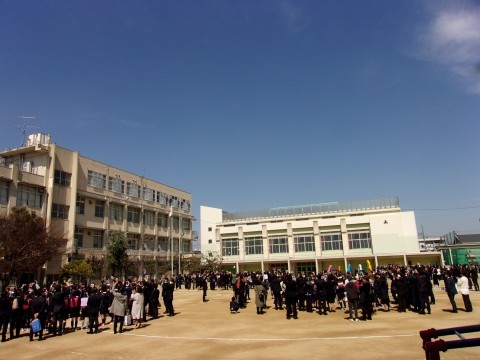 晴れの日にふさわしいお天気の中,6年生132名が三国丘小学校を巣立ちました。