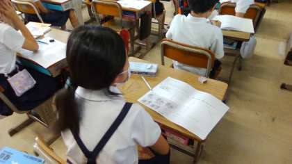 3組では垂直の学習をしていました。書き方を前で説明している様子です!