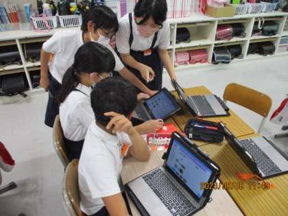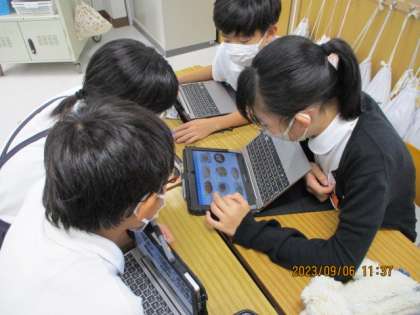 タブレットの発表ノートで作成した食育教材を使って、グループワークをしました。