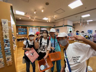 名古屋港水族館でお土産を買っています。
