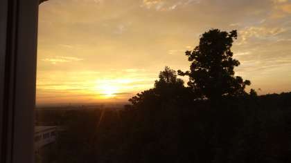 おはようございます。修学旅行二日間、朝5年半きれいな朝焼けです。子どもたちは少し起きている子もいるようです。もうすぐ全員起床です。