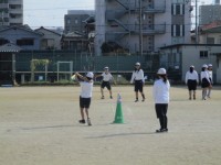 ティーバッティングの練習です。あてるのは難しいですが,ボールをとらえる感覚をつか...