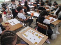 今日の「秋みつけ」で公園で見つけてきた葉っぱやどんぐりをつかって,自分の好きな形...