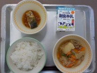 今日の献立は、クッパ、ぶたキムチ、ヨーグルト、ごはん、牛乳です。