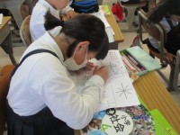 作品を持ち帰る袋に思い思いの絵を描きました。