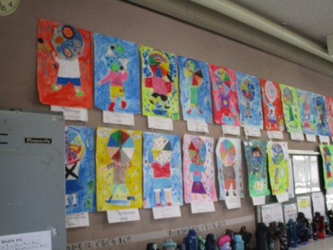 2年生の教室でも図工の作品が掲示されました。とってもすてきです。