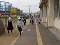 英彰こども園の園児さんたちが避難訓練にきました。急な大雨等による水害が予想される場合、本校の校舎3階に避難することになっています。