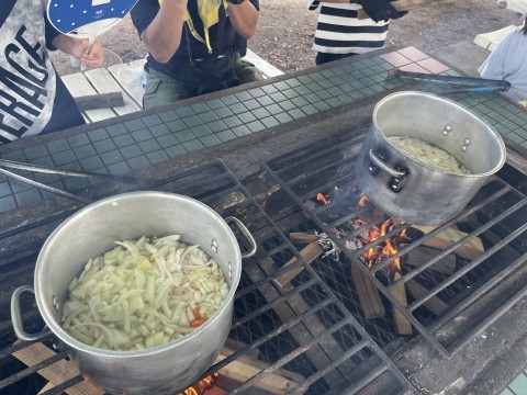 気温が上がってきました。昨日に比べて暑く感じますが、おいしそうなカレーの煮込みが始まっています。