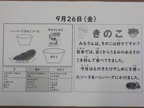 今日の献立は、ポトフ、ハンバーグきのこソース、こくとうパン、牛乳です。