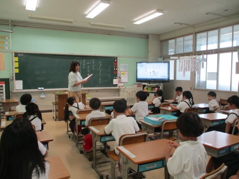 給食当番のお話を読んで,主人公の気持ちの変化をみんなで考えました。