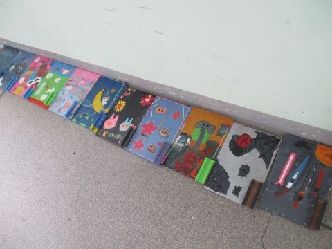 どの作品もすてきに塗り上がりました。くぎやゴムが付き始めているものもあります。