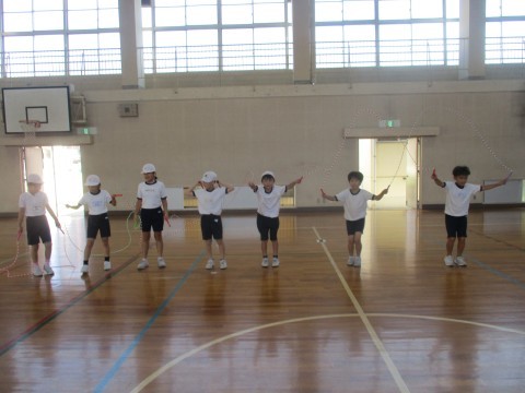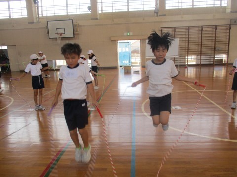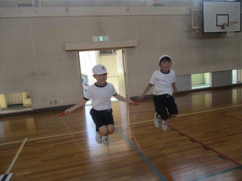 友だちと一緒に笑顔で跳ぶ様子が素敵でした。