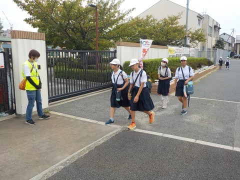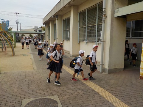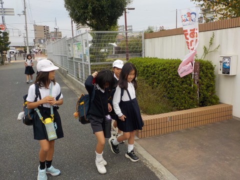 今日は2年生が町探検で校区内を散策します。どんな発見があるでしょうか。くもり空なので歩くにはちょうど良さそうですね。
