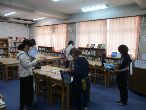 朝早くに図書室にお集まりいただき,ありがとうございました。本を選んでくださっているところです。