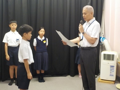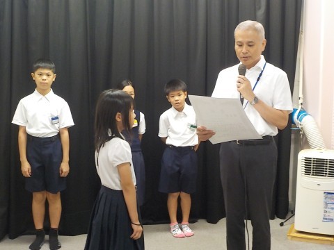 テレビ朝会を開きました。初めに校長先生の話がありました。次に生徒指導の先生から石や砂を投げたり蹴ったりしないようにしましょうという話がありました。最後に「堺市学校理科展」の表彰がありました。