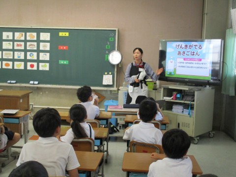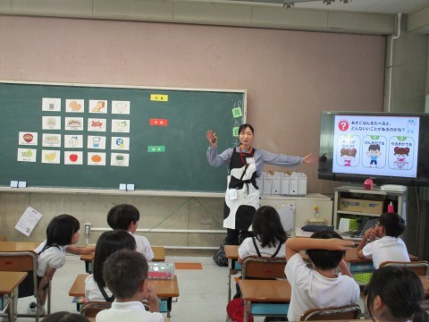 3時間目は1組、4時間目は2組で、それぞれお話をしてもらいました。
