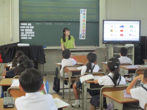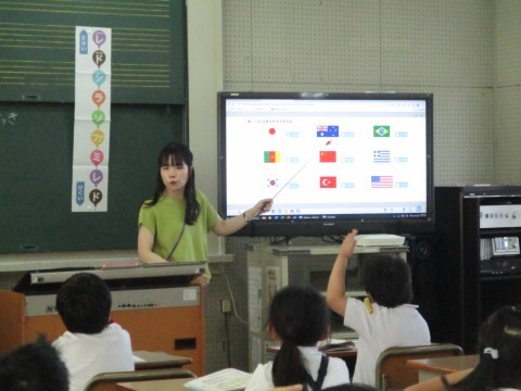 「ひのまる」のうたを学習するにあたって,各国の国旗が出てきました。万博会場のイメージをもった子もたくさんいたようです。