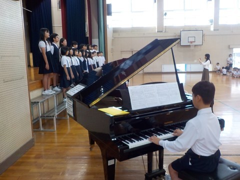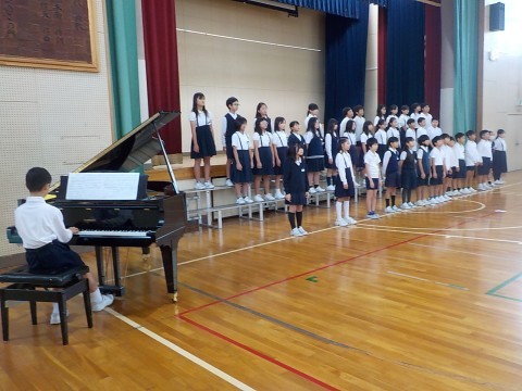 5年生の連合音楽会の壮行会を行いました。今日は,1年生と3年生に演奏を聴いてもらいました。子どもたちからは「音程がしっかりしていた」「声がきれいだった」などの感想が聞かれました。楽曲「大切なもの」を本当にきれいな歌声でしっとりと聞かせてくれました。本番までもう少し時間がありますのでもっともっと完成度を高めてください!