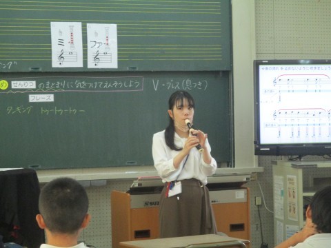 旋律のまとまりやタンギングを考えながら,リコーダーを吹きました。