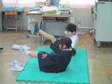 ひまわり教室で算数の研究授業がありました。どちらが多いか実際に比べている様子です。最後にすこし体幹トレーニングも行いました。