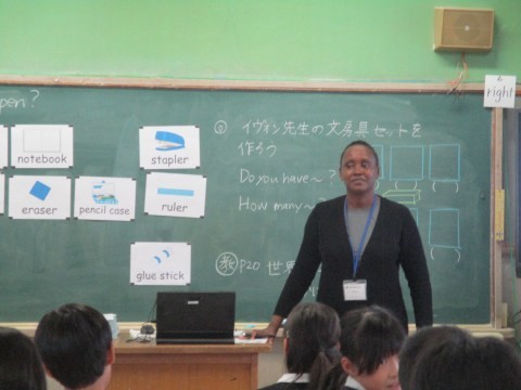 カードを使って文房具の言い方を学習しました。