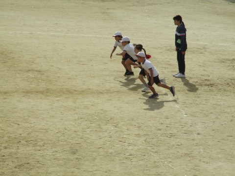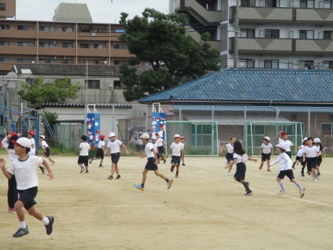 涼しく過ごしやすい日になりそうです。ウォーミングアップで学年おにごっこをしてから,50メートル走の練習をしました。