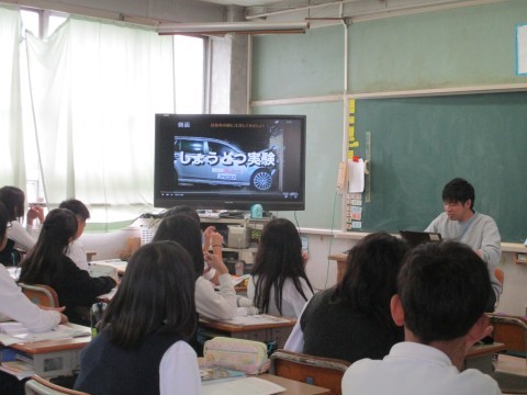 自動車の開発に関する学習です。衝突に備えた安全な車だけでなく,たとえば身体の不自由な人のための車などがあることを学びました。