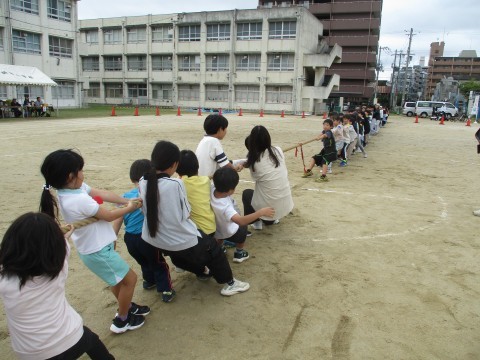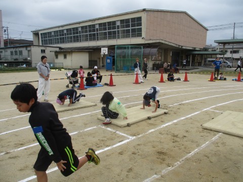 英彰校区自治連合会の英彰ミニオリンピックが開催されました。心配していた雨も降らず,校区の大人も子どももみんなが笑顔で競技を楽しみました!