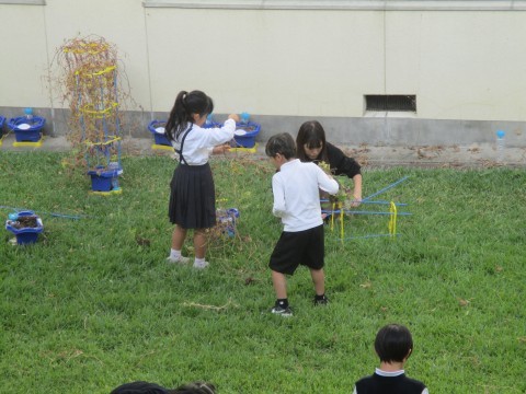 あさがおのつるを使って,クリスマスリースをつくりました。