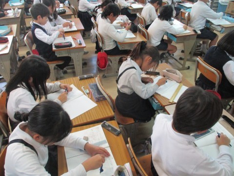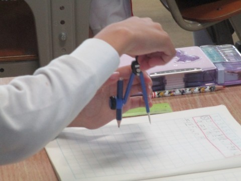 コンパスの使い方を勉強しました。まわす方向や力の入れ方にもコツがありそうです。