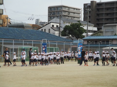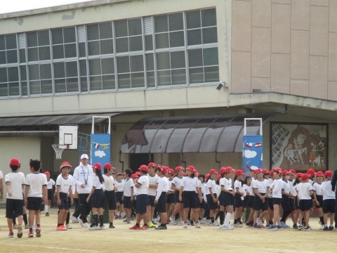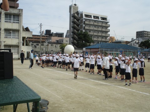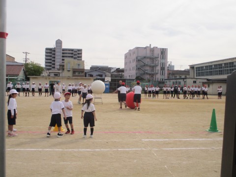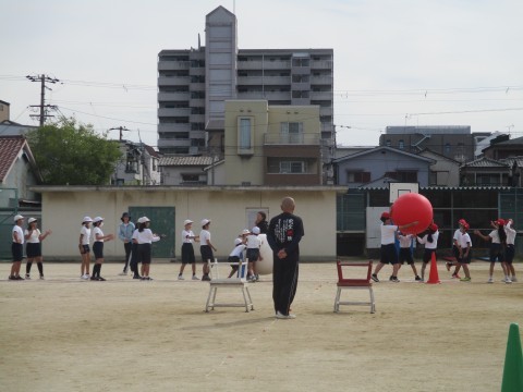 全校競技「大玉おくり」の練習をしました。球が脱線しないコツをつかんで赤白ともに頑張りました。当日の勝敗はいかに?!