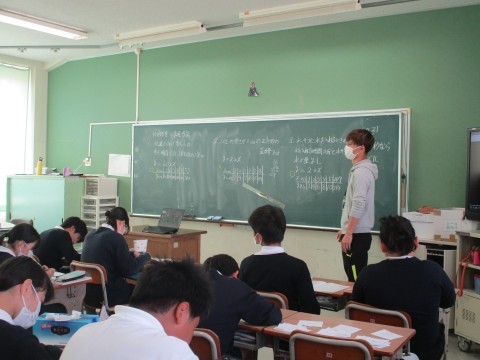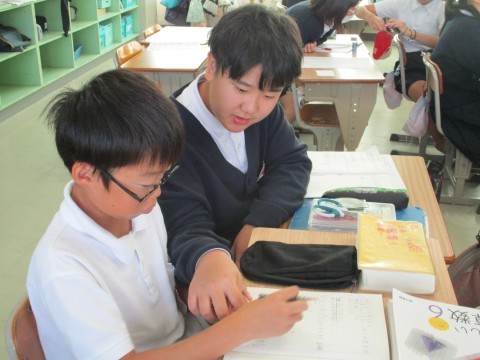 比例のふりかえりの問題を解いています。友達に教えたり教えてもらったりしながら,かなりの難問に挑戦です。
