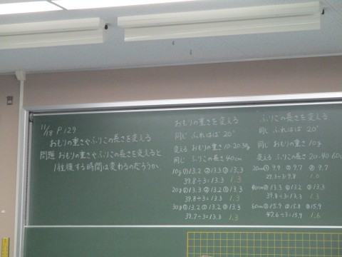 おもりの重さやふりこの長さを変えると一往復する時間が変わるのか,実験を行いました。