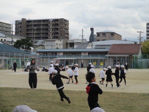 今日は2組が運動場です。気温が下がっていますが,元気に仲良く過ごすことができました。