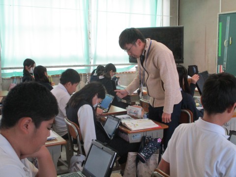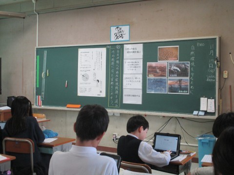 国語の研究授業です。たくさんある環境問題の中で関心のある環境問題を選び,その問題に合った資料を探しています。