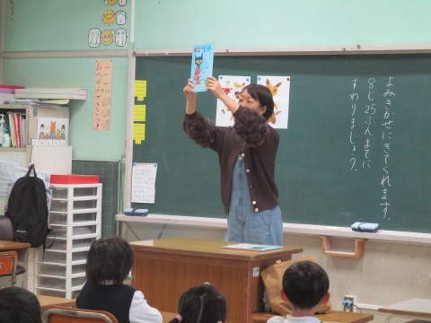 PTAのお母さんお父さんによる読み聞かせがありました。1・2年生の教室の様子です。