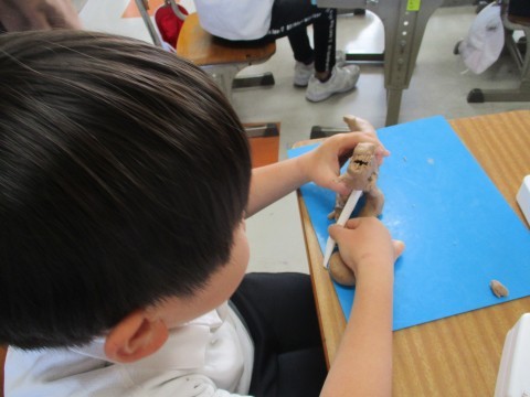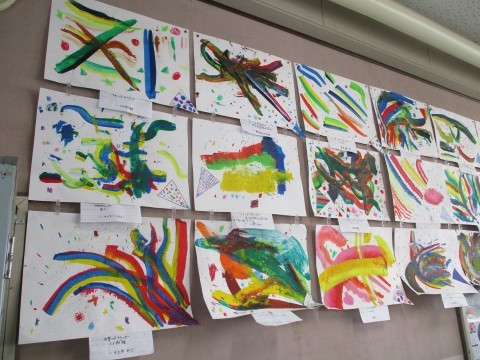 先日から取り組んでいる作品「クラッカー」が完成して,教室が一気に華やかになりました。終わった子がつくっていた粘土のゴジラも上手!