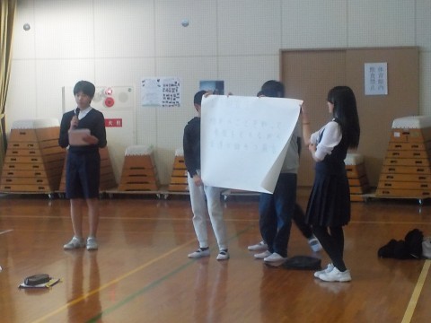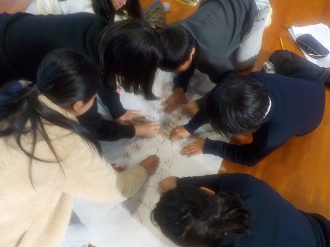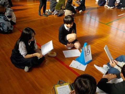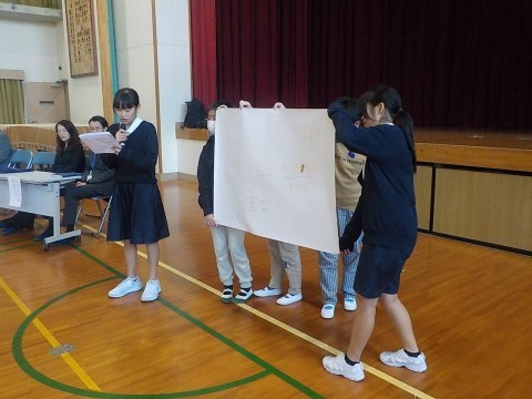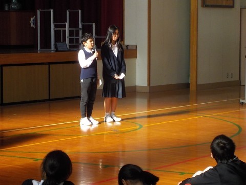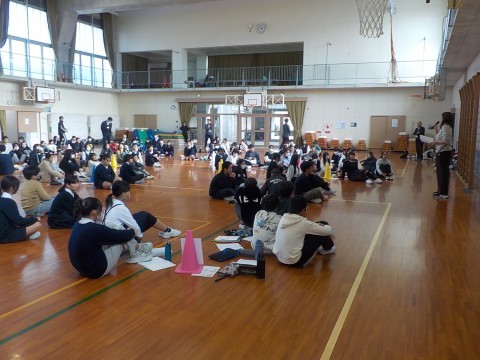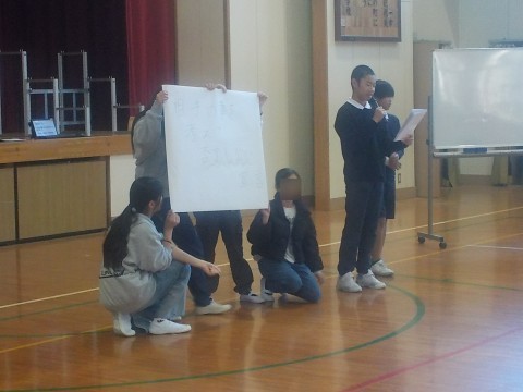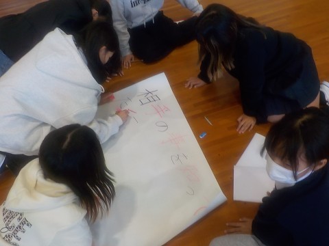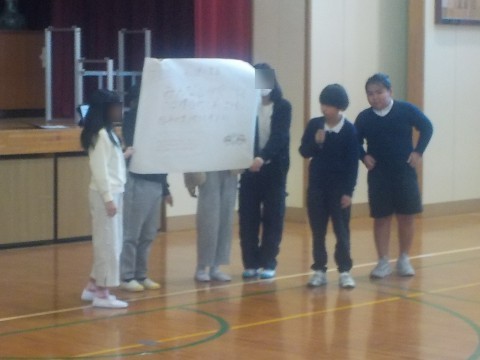 新湊小学校にて,「にんげん学習交流会」を実施しました。新湊,英彰両校の6年生が緊張しながらも積極的に交流し,中学校生活についての不安や安心材料について話し合いました。最後は各グループで「安心宣言」をまとめ,発表することができました。今回の交流でお互いのことが少しわかったので,中学校生活への安心材料となればいいですね。