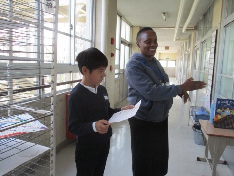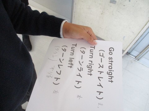 校舎の階段や廊下を使って,NSのイヴォン先生に道案内をしています。