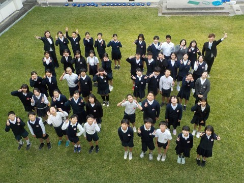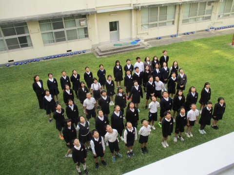 中庭で卒業アルバムの集合写真を撮影しました。このあと各委員会活動の写真も撮影しました。