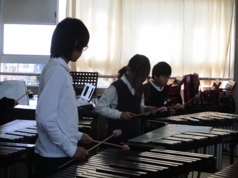 「キリマンジャロ」合奏の練習中です。4パートに分かれて演奏します。