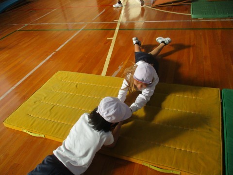 子どもたちもたくさん転がることが上達して,友達と仲良く取り組む姿が素敵でした。