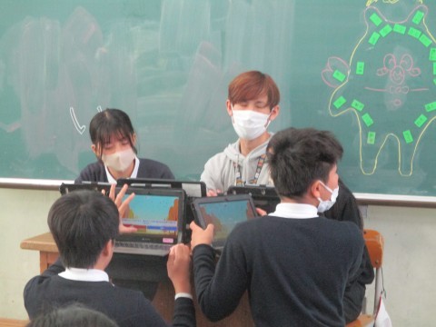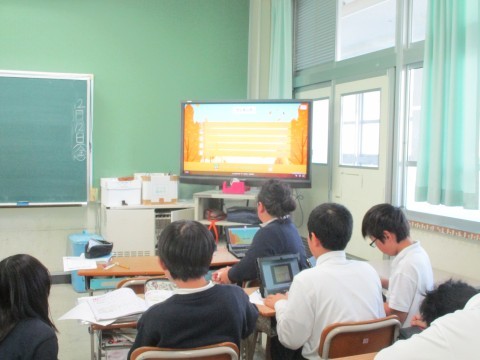 タブレットに次々表示される算数の問題に答えています。正確さと早さを競っています。