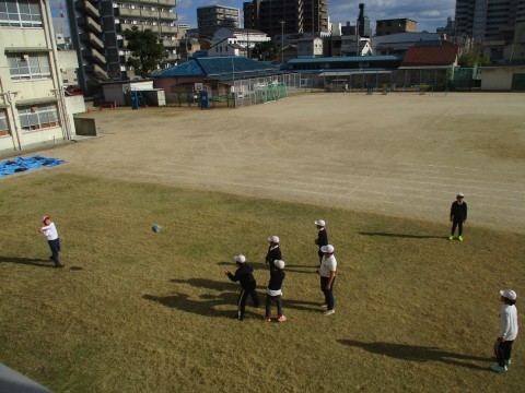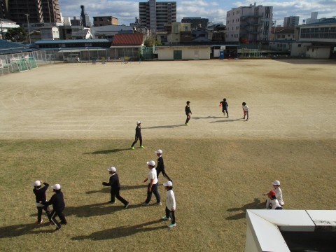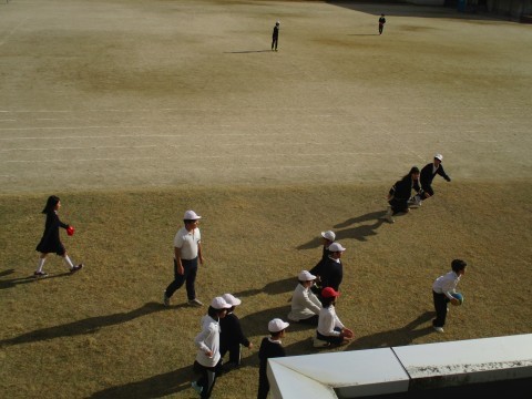 あたたかい日差しの中,他の学年は4時間授業ですが5年生は午後もがんばりました。貸し切りの運動場は嬉しかったようです。