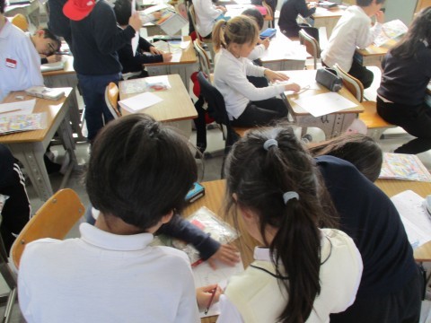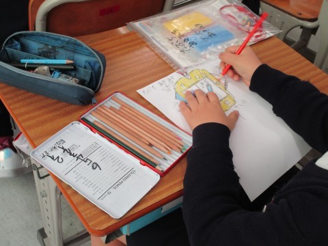 好きなこと,ものなどを題材にメダルを作ります。ネコが好きなネコアレルギーのお母さんに,ネコのメダルをつくっている子もいました。
