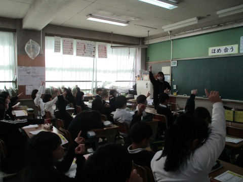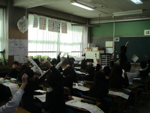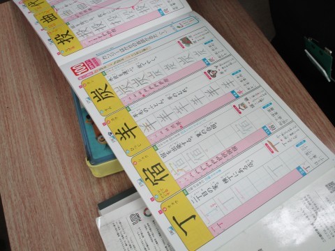 新出漢字のそらがきをしているところです。何画目が中央を通る,など実際に書く時のポイントもおさえていました。