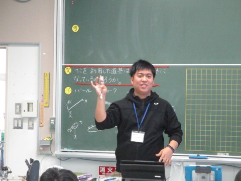 てこの原理=支点・力点・作用点について学びました。手品のフォークが折れるしくみも知ることができました。