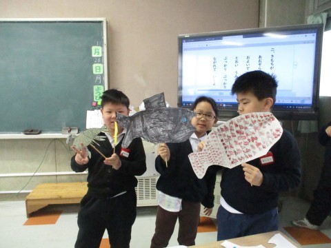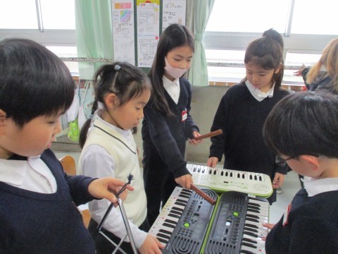 発表に向けて,劇の練習をしたり,合奏の練習をしたりしています。